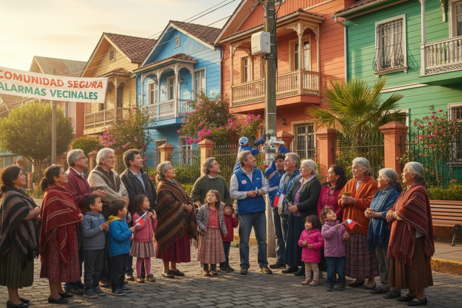 Protege tu comunidad con nuestras Alarmas Comunitarias de alta potencia, ideales para Juntas de Vecinos, Municipalidades, FNDR, FNSP, Gore, Barrios, Condominios y Pasajes. Activa una alerta sonora masiva con solo presionar un botón y disuade emergencias al instante. Además contamos con soluciones inteligentes, con activación mediante teléfono, App Móvil.